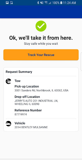 • Retrieve confirmation service is on the way and the estimated time of arrival