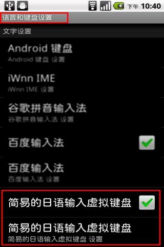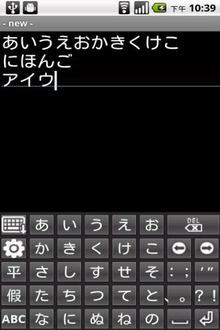 Very Easy Virtual keyboard for input japanese Input Hiragana, Katakanacheck it with Kanjihttps:market.android comdetails?idjp.ne.neko.freewing.OpenWnnEasyHOME Screen gt; Setting gt; Language amp; Keyboard gt; Very Easy Japanese KeyboardINPUT BOX AREA Long time push . Select Very Easy Japanese KeyboardAppear Virtual Keyboard .How to use .http:www.neko.ne.jpfreewingandroidjapaneseimepush Hira appear Ha ma ya ra wa n other Hiragana .push Hira rotate AKSTNHMYRWNGZDBPpush Kata appeared Katakana .Very Easy Japanese Keyboard IME Very Easy Virtual Keyboard for input JapaneseJapanese Hiragana, Katakana Input Method Editor It is a simple visualization keyboard that can easily input Japanese. The hiragana and the katakana can be input by touch. Inexperienced one can be easily input to the Roman alphabet. It is suitable also for the person who studies Japanese. The kanakanji conversion function is not provided. Android 1.52.3. etcHuawei U8150 IDEOSHuawei C8500SAMSUNG I5508 GalaxyZTE Blade 003ZV880 SoftBankCamangi WebStationSmartQ V2FREE WINGhttp:www.neko.ne.jpfreewingPermissionsThis application requires no special permissions to run.