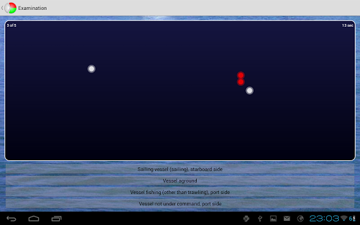 This app helps you to learn the vessel lights as prescribed by the International Regulations for Preventing Collisions at Sea (ColReg).