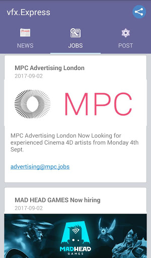 Are you a VFX/Animation Artist/Student? Welcome to Vfx Express, An app dedicated to providing you with latest VFX & Animation Film Industry News and Jobs. This app also lets you post jobs and news around you.