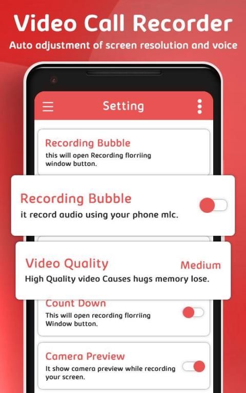 Video Call Recorder support HD video recorder, a call recorder and phone automatic call recorder. Auto Call Recording App uses Accessibility services. Record your calls and conversations with high quality.