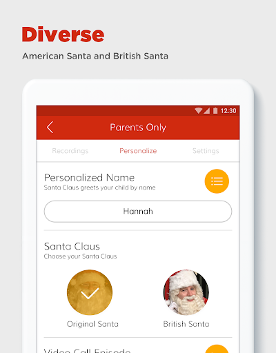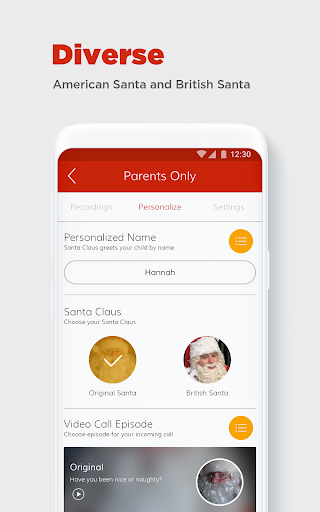 • Choose to have your simulated calls as incoming (Santa calls you) or outgoing (you call Santa)
