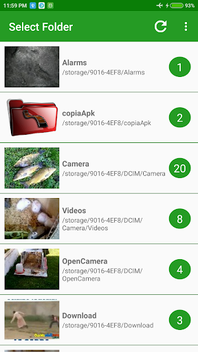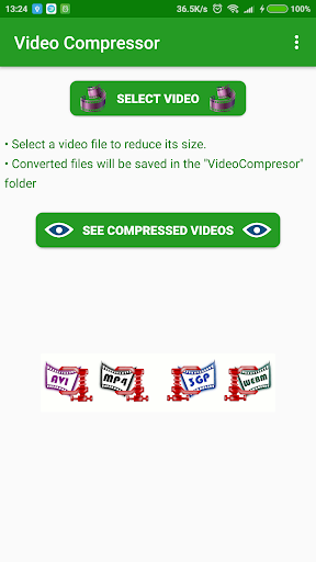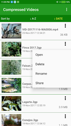 Access to all compressed videos with the possibility to open, share, delete or rename.