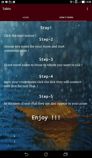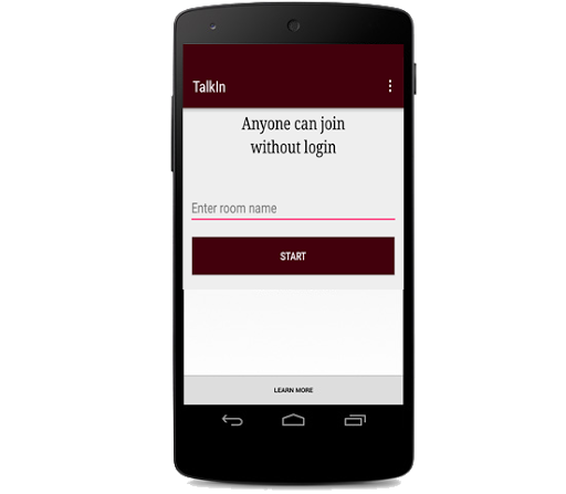A room in our product is the place on the app where people meet to talk. To create a room, just type a room name on our app and click create. Then share the name of the room and send it to your friends.