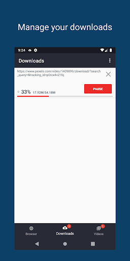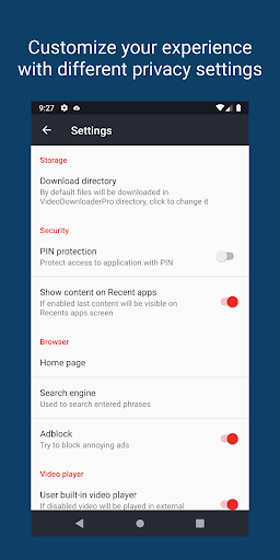 you can successfully download all types of video even with a slow internet connection. Thanks to the built-in pin protection, you can protect downloaded files from unauthorized access. The built-in private browser protects your privacy. Download and browse photos and videos in a convenient and secure way.