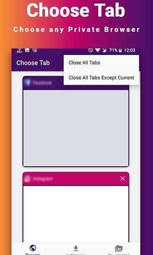 downloads videos and social media clips from internet and social media webs with private Brower.