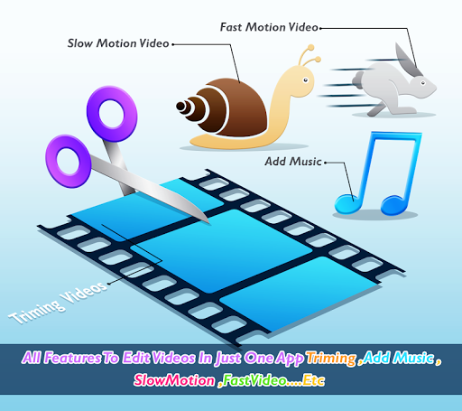 You can add video filters, transitions, music, voice over to the video, and you can rotate, zoom, trim, split your video. Play your video in slow motion. The slow-motion editor lets you change video speed to produce slow-mo video clips!