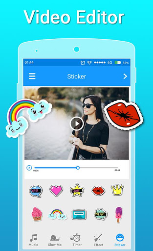 Add animated stickers including emoji , sticker , text and so on to your video to personalize your video . Your best Video Editor !