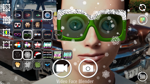 Fake eyes and sunglasses add extra fun to your photos and videos! You can mix and match eyes and glasses - and of course all old effects are available for mixing. Don't be limited by boring presets of other apps: Video Face Blender gives you endless new filter mixes!