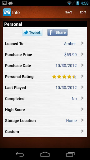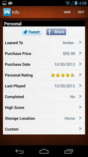 Uses UPC barcode scanning, database search and manual barcode entry, as well as TONS of incredible features such as Android, iOS, and website syncing, wish lists, filters, sorting, library views, bulk adding, and more. View information, cover, and add personal details. Great for collecting.