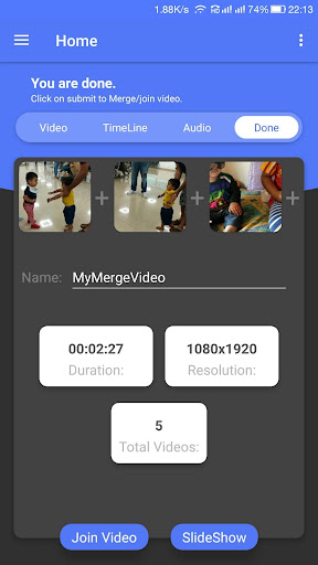 "Video Merger Joiner" is the best & usable application to join unlimited video at time.