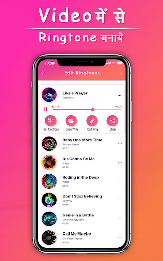 - Free to manage your ringtone files. Delete, Edit, set as ringtone/Alarm/Notification Tone.