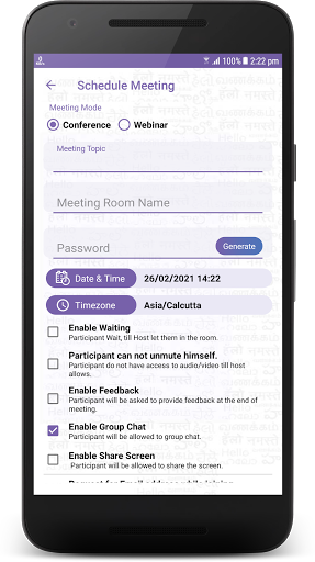 Host / Admin of the meeting can enable the following options for each meeting:
