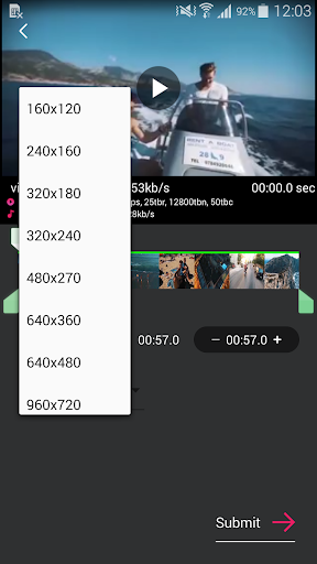 160x120, 240x160, 320x180, 320x240, 480x270, 640x360, 640x480, 960x720