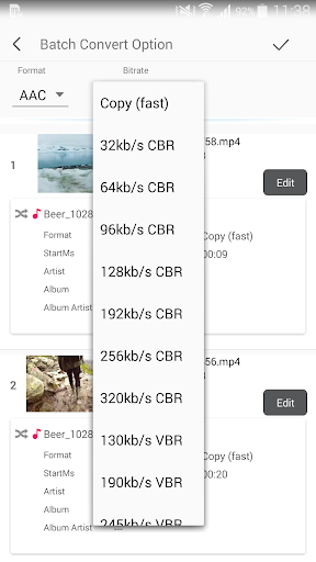 You can batch convert video files to audio files(Mp3, AAC) by this Video MP3 Converter, it is easy to use. You can also change the audio bitrate, meta like artist, album, album artist info. Add cover to mp3, change audio volume.