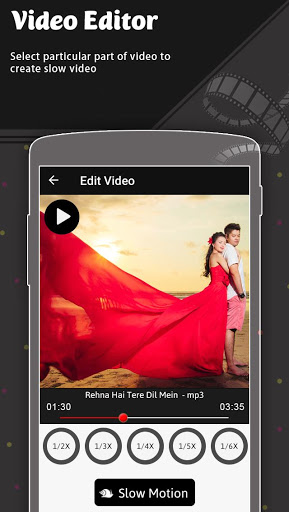 ➺ Create slow motion video of a particular part of video by using trim option or make the whole video slow. Choose any video and select speed like 1/2, 1/3, 1/4, up to 1/10.
