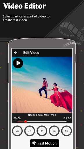 ➺ Use fast motion video app to increase speed of the video using this video editor app. You can make whole video run in fast motion or particular portion of video using trim option. Supports speed like 1X, 2X, 3X, up to 10X.