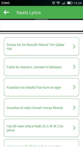 The app brings you the biggest collection of urdu and English Naat. The Naat videos in the appcontain Naat Khwaans of Pakistan reciting the praise of Prophet Muhammad (PBUH). In the app there are Nats that are English Naats, Arabic Naats and Urdu Naats in praise of Prophet. Download the app now and enjoy the best and most famour Naat videos.