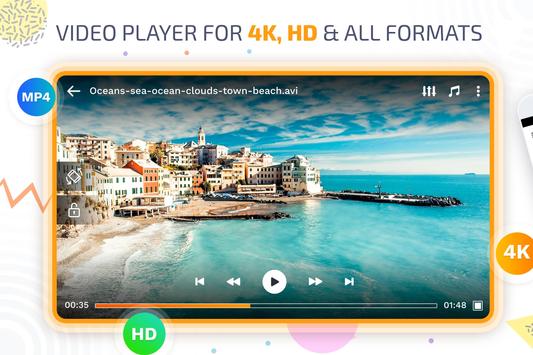 It supports ALL video formats, 4K/ultra HD video files, and plays them with high-definition. It is one of the best HD video player for android tablet and android phone.