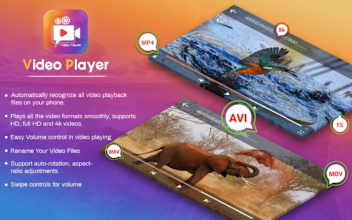 Video Player - All Video Format Support is a professional video playback tool. It supports ALL video formats, 4K/ultra HD video files, and plays them with high-definition. It is one of the best HD video player for android tablet and android phone. Video Player All Format also protects your private video from being deleted