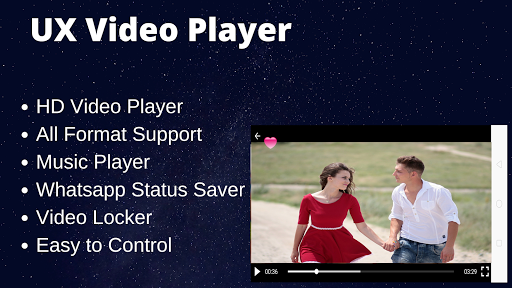 In app video player, music player and Whatsapp Status saver. Support ALL video formats, including MKV, MP4, M4V, AVI, MOV, 3GP, FLV, WMV, RMVB, TS etc.