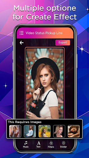 video Status Pickup Line app have large collection of all latest effects and with that you will edit your all love wish lyrics into