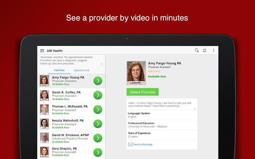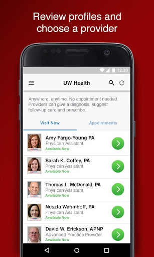 The process is fast and easy. Download the UW Health Care Anywhere mobile app and set up an account – you’ll be one step ahead when you need to see a doctor.