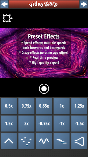 Use the special real-time controller for recording any forward or reverse speed effects. Or for extreme simplicity, just pick your favorite preset: Fast-motion, slow-motion (slow mo), reverse, reverse slow motion, jump around, repeater loops, vibrato - and much more.
