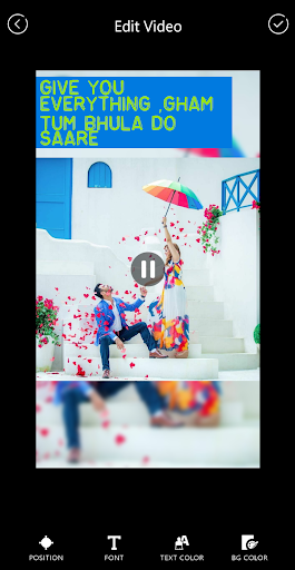 is application which allows users to add lyrics with your favourite song. Lyrical Video Status Maker awesome video status app. Photo Lyrical Video Status Maker with Music have great collection of song lyrics select your favorite lyrics and add them on your photo and make a lyrical video.