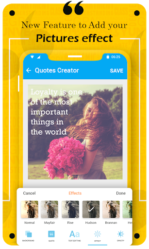 * Quotes Creator or Picture Quotes :- Quotes Creator or Picture Quotes function allows you to create quotes or Picture Quotes for your DP or Social Media Profile Picture. Quotes Creator or Picture Quotes is an advanced app.