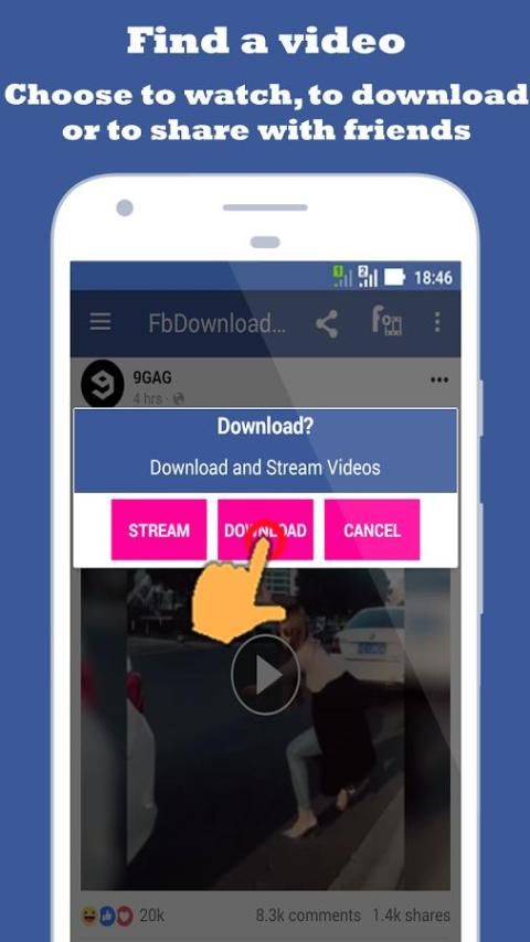 This app give you the possibility to save videos for Facebook Download videos & allows you to save and share free HD videos and GIF.