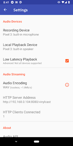 The Vinyl Cast App makes use of Android's USB audio peripheral support, audio recorder, media codecs, Google Oboe library, media APIs, and Cast API to stream the audio from a connected audio source to Cast-enabled devices.