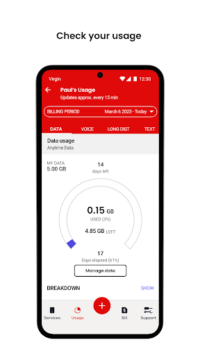 Good to know: We won't charge you data when you use it on 3G/4G/LTE networks. The My Account app is only available to monthly Members. On Prepaid? Manage your account at virginplus.ca/prepaidlogin.