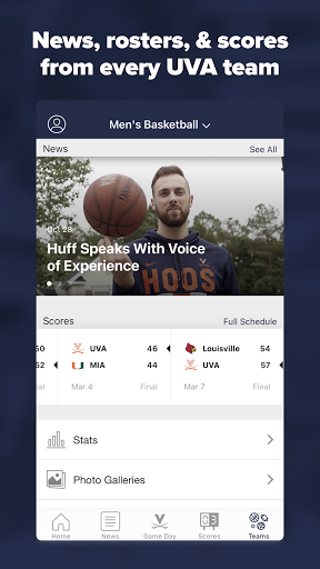 Virginia Sports mobile app lets you follow all University of Virginia sports teams from one place. Get rosters, real-time stats, schedules, news and videos directly from the source. Listen to live radio broadcasts, no matter where you are!