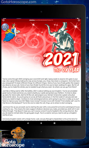 Virgo Horoscope is an easy & cozy horoscope for everyday use. Astrological forecasts and horoscopes for Virgo on Android apps free, developed with love for the Zodiac Sign Virgo by the GotoHoroscope.com