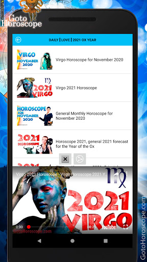 Virgo Video Horoscope for the actual period will help you stay informed even without reading Daily Horoscope, simply play a video right from the app and listen for different types of Virgo Horoscopes.