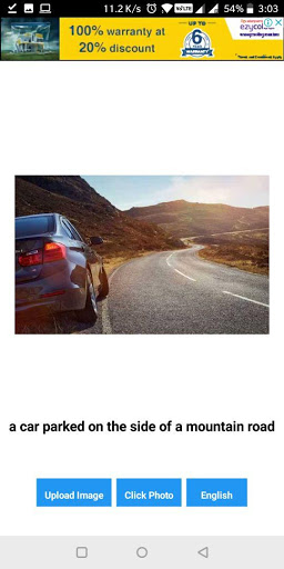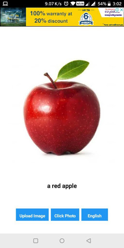 This app uses Artificial Intelligence also know as AI technology to describe the content of an image. You can either click a photo or upload an image from gallery. The app will analyse the image and will give you the description of the image.