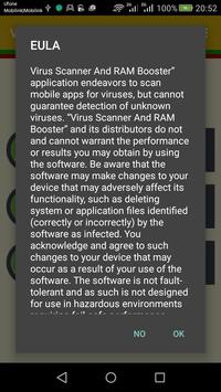 Virus Scanner and RAM Booster is an system Application for android which scans for Infected Apps and enhance RAM and phone memory