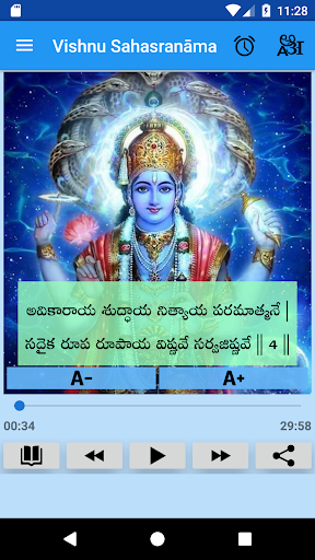 *Increase and decrease the text size of your language lyrics of slokas as per your convenience.