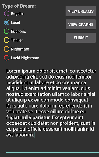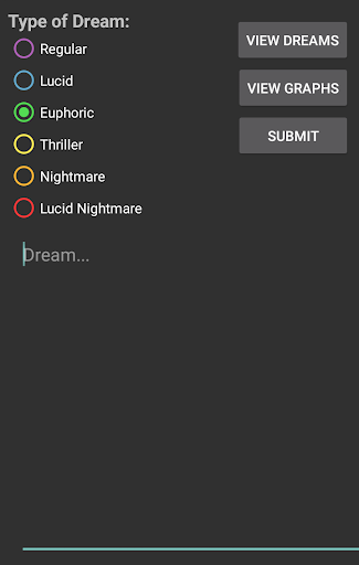 - Selecting dream types (Lucid dreams, normal dreams, nightmares, etc)