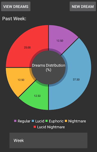 - History pie graphs of dream type distribution (Weekly, Monthly, Yearly, etc)
