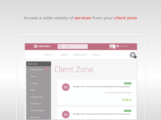 Download now the Visiotech APP and manage quickly and securely all your purchases and orders.