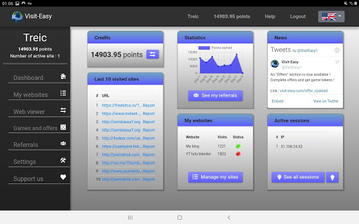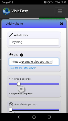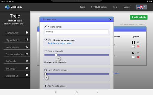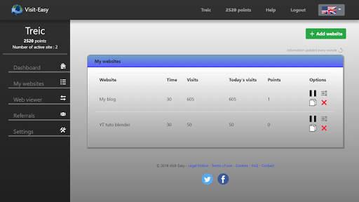 1) Add your website and configure the settings (time, limit of visits per day, etc...).