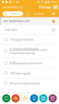 Shopping List feature that facilitates the management of required items for purchase for meal plans.