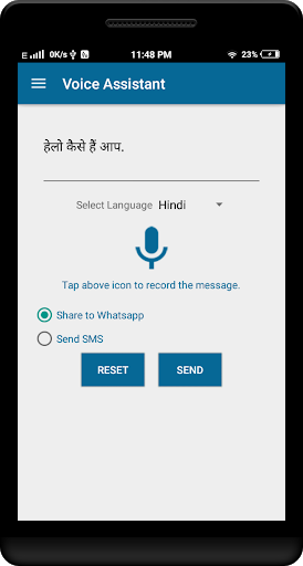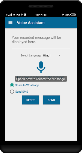 Most of the time you really don't want to type message with your fingers, its really boring. This application takes voice as input and covert it into text.