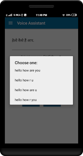 - Once recorded, application lists matching sentences, you can select the exact one.