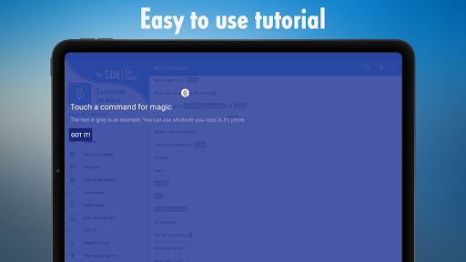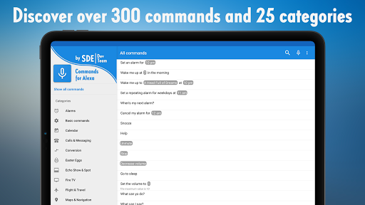Discover all Alexa voice commands for voice control, say Alexa and do things by just commanding with your voice! Find Amazon Alexa Assistant commands and phrases in this easy to understand guide and try them right away! All voice commands are divided in catergories! Everything you can say to to your phone or personal Amazon Echo speaker is presented to you as a guide of about 25 categories of useful and powerful Amazon Alexa voice actions and commands. By saying Alexa, you can control your phone or any other device, with help of Alexa Asisstant (this app is not Amazon Alexa Assistant itself!). We also offer you to place a widget which will start Amazon Alexa on tap.