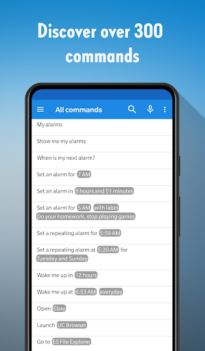Discover commands, see possible examples, understand the usage of over 300 hands-free actions (commands) you can say to Amazon Alexa Assistant in your phone or Echo speaker and find them in just a few taps! Everything you may ask your phone to do, from Search and Navigation, to Messaging and fantastic Easter Eggs are presented to you in the most intuitive and beautiful way in this full Alexa Voice Commands guide.