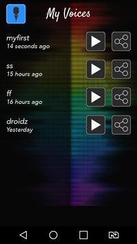 Turn your voice into funny and cool sound with Voice FX app. Simple interface and easy to use just by record your voice and apply the desired effect. You can also save and share your works.
