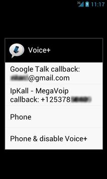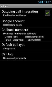 The Voice catches all outgoing calls and uses Google Voice service to connect you with the dialed number by calling you back on your selected callback number first, then calling the number you dialed. When you make an outgoing call you can select a callback number from the displayed callback list that the Voice will use to connect you with the call you initiated. The Voice will connect you with the called partner after both Voice initiated calls are successfully established.
